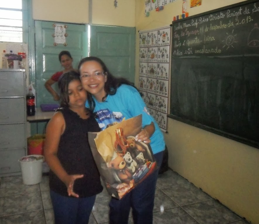 A entrega dos presentes foi feita pela equipe do colégio Betta, juntamente com alguns de seus alunos e acompanhada pela diretora Geni e  algumas professoras do Parigot.